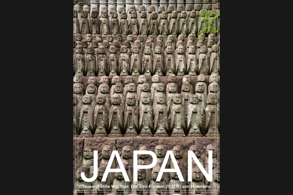 Ein Ort der Stille. Ein Meer aus Gesichtern. Hunderte kleine Jizō-Figuren, die dicht an dicht aufgereiht in den Tempelterrassen von Hasedera wachen – jede einzelne ein Symbol des Mitgefühls. Dieses eindrucksvolle Motiv aus der Artem24 – World of Poster Serie fängt die friedvolle Atmosphäre eines der berührendsten Tempel Japans ein.